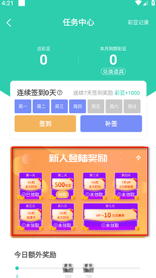 3、完成每日签到即可获得奖励,连续签到七天更可领取1000金豆。