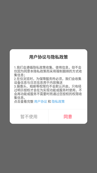 1、首先打开软件,在阅读用户协议与隐私政策后,点击“同意”按钮进入应用。