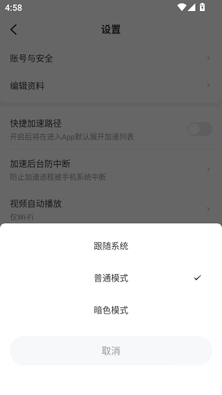 5、开启“暗色模式”后,界面即可成功切换为深色主题。