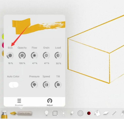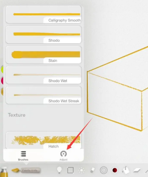 3、点击任意一款画笔,选择右侧的“adjust”(调整)选项。