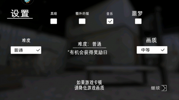 2、接着,我们可以对游戏难度、画质等方面进行修改操作,最后再点击继续。