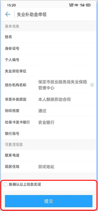 4、系统进入申领审核环节,请核对显示的申领信息,确认无误后点击【提交】。