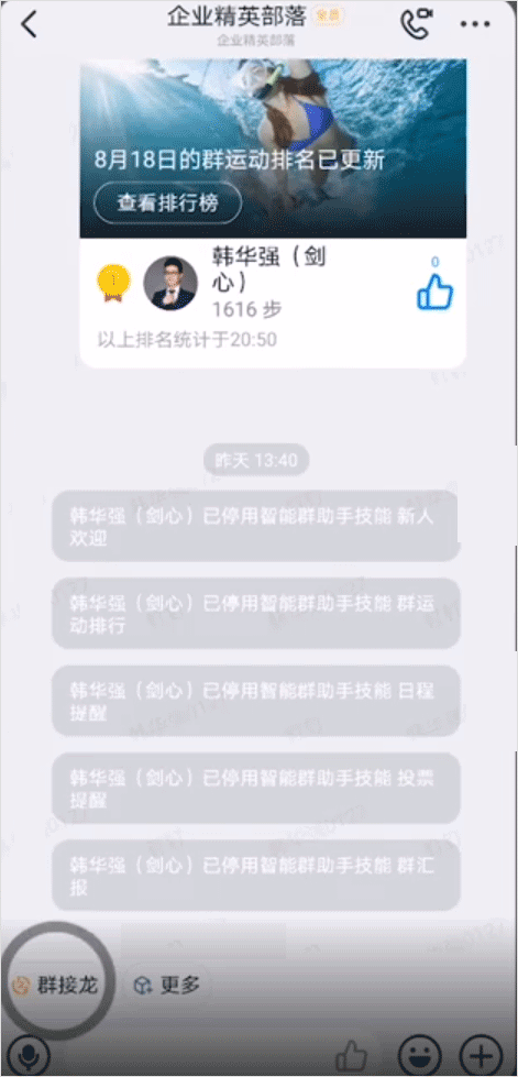 1、【手机端钉钉】-【消息】-点击聊天框上方的【群接龙】;