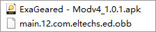 1、下载Exagear模拟器压缩包,解压后得到模拟器安装包及“main.12.com.eltechs.ed.obb”文件。