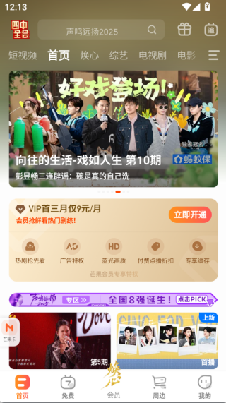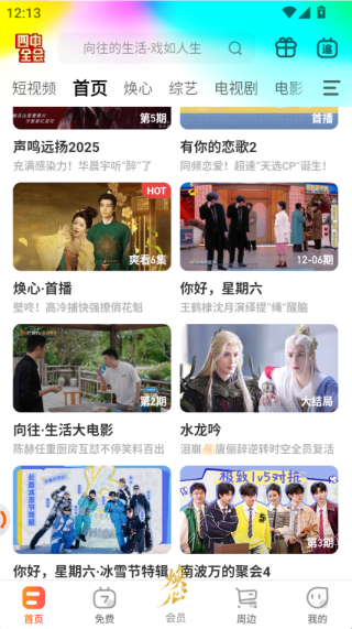 1、打开app,进入首页,你可以看到综艺、电视剧、电影等热门的视频。