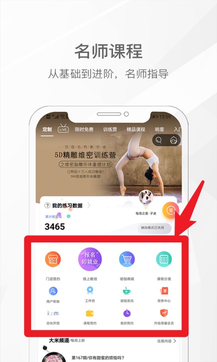 2、首页展示名师课程入口,从基础到进阶内容分类清晰,用户可快速查找所需课程;