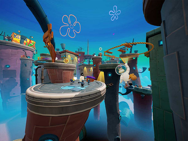 2、高还原度场景:美式卡通画风重现比奇堡、蟹堡王、水母田等经典场景,细节精致,彩蛋遍布。