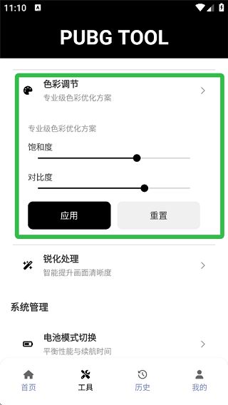 4、向下滑动找到色彩调节功能,在此可自定义画面饱和度与对比度。
