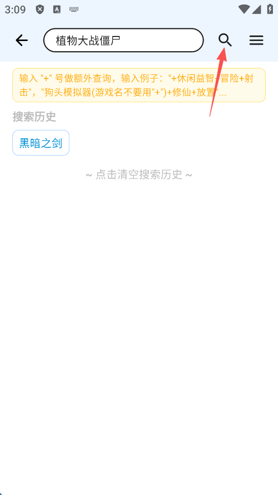 2、输入需要下载的游戏名称,随后u点击“搜索框”右侧的“搜索”标识。