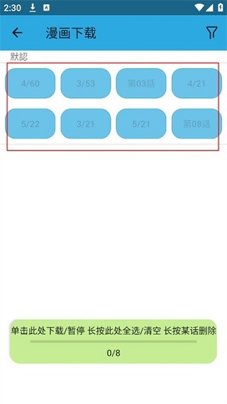 4、下载状态通过颜色区分:灰色代表尚未下载,蓝色表示正在下载中,绿色则代表已成功保存到本地。