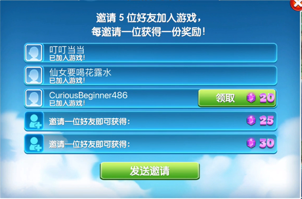 4、任务完成后,你就可以在自己的主账号上领取钻石奖励。如果使用同一设备操作,也可先复制链接,再通过浏览器或其他方式打开,使用新邮箱等注册全新账号,同样玩到第3关后切换回主账号领取钻石即可。