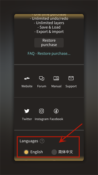 5、在语言选项下提供多国语言选择,直接点击所需语言即可完成切换,用户可根据自身需求选择合适的版本。