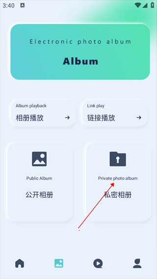 1、启动光影影视应用后,如图所示点击“相册”栏目。