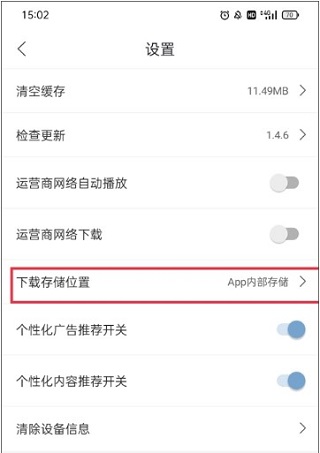 3、跳转至设置页面后、点击“下载存储位置”这一项目。