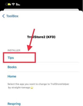 五、再次打开Tips应用,点击“Install TrollStore”,即可体验TrollStore 2(请注意,此安装步骤也需要保持代理网络连接)。