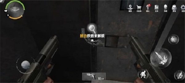 8、回到走廊并向前行进,用枪支击碎前方门上的铁链即可开启此门。