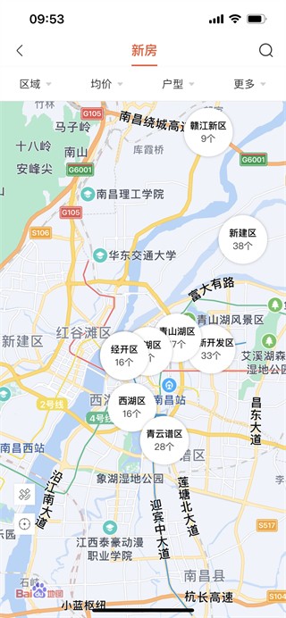 5、地图找房能够查看你周围区域的房区;