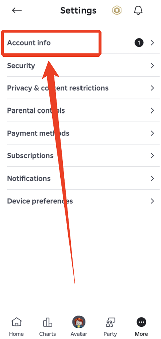 3、进入设置菜单后,选择第一个功能【Account info】(账户信息)。