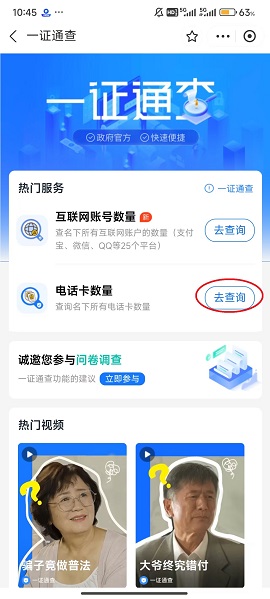 4、进入功能页后,查看“电话卡数量”相关说明,并点击右侧的“前往查询”按钮。