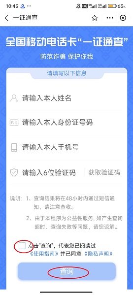 5、根据页面提示填写必要信息,勾选同意相关协议后,点击“查询”按钮提交。