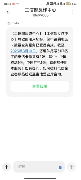 6、查询完成后,即可在结果页面中查看本人名下登记的电话卡数量。