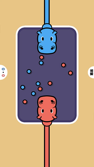 点击操控河马吃掉小球,吃到自己颜色小球时获得2分,吃到对手颜色小球时扣除1分,先得到80分获胜。