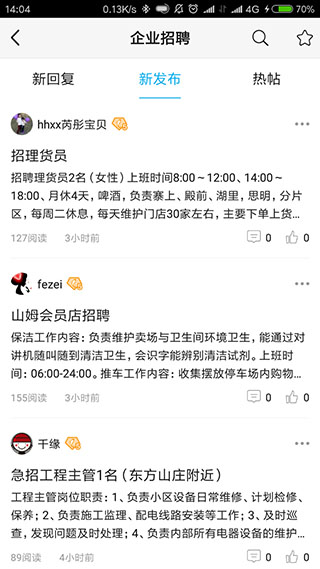 1、小鱼网app提供很多功能,第一当然是招聘了,在首页点击职场就可以看到新发布的招聘信息;