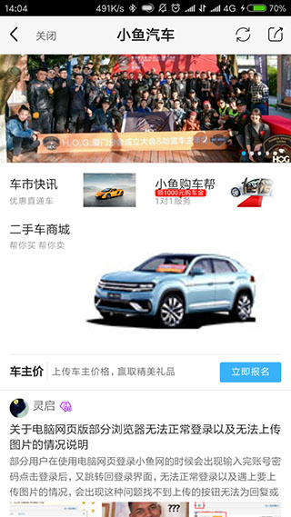 2、如果想要买卖车,可以点击汽车查看车市快讯、二手车商城等诸多内容;