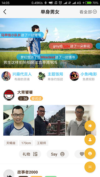 3、在这里还可以找到属于你的情缘,在单身男女版块中有很多孤独的灵魂等你遇见;