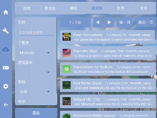2、模组下载功能同样便捷,支持中英文关键词检索,并可按下载来源、适配的游戏版本、模组类型等多种条件进行筛选。