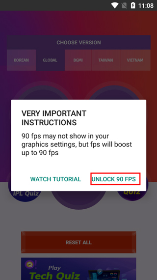 2、进入设置界面,选择“global”选项并开启90帧解锁。