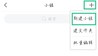 3、选择右上角【+】图标,点击“新建小组”。