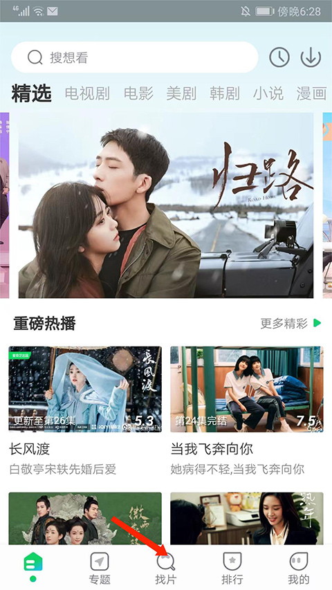 2、进入找片界面,选择右上角【放大镜】图标即可开始搜索,