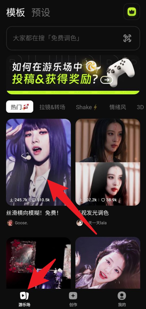 1、打开 App,点击底部「游乐场」,浏览热门模板,选择喜欢的内容进入查看详情。