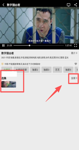 4、换影片如《数字猎凶者》遇卡,再点下方家1家2线路即可恢复。