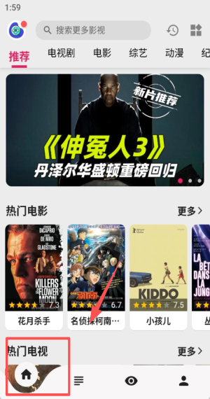 1、在首页搜索栏输入片名,选择推荐位《伸冤人3》或《花月杀手》。