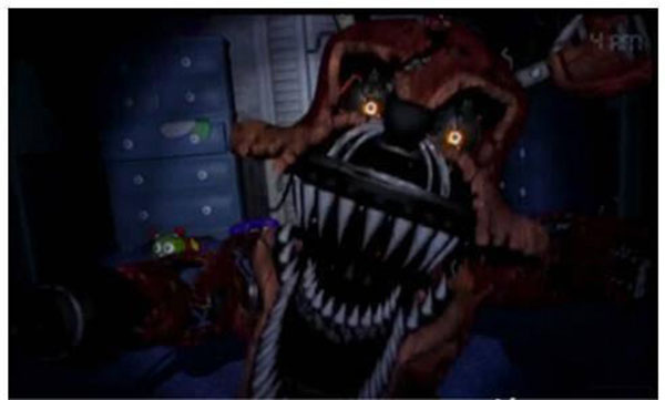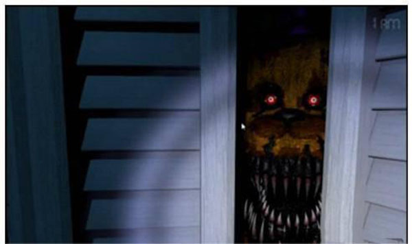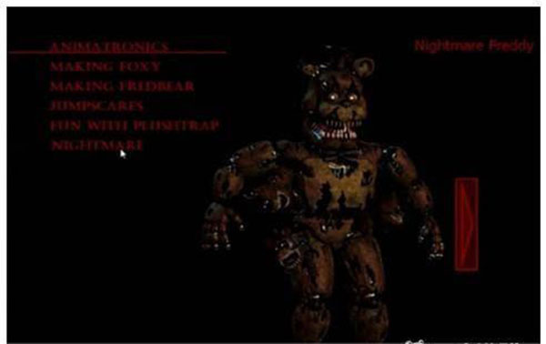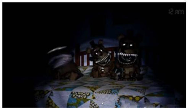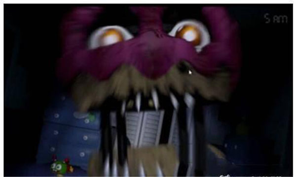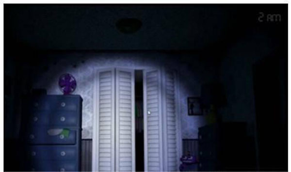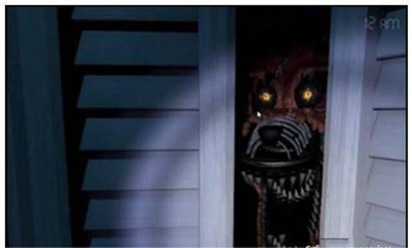 2、每次巡查左右门后都应查看背后泰迪,其残影聚集速度加快。中间狐狸出现时会有独特的关门声和柜门晃动提示,有足够时间通过持续关门将其驱退。