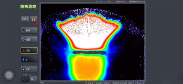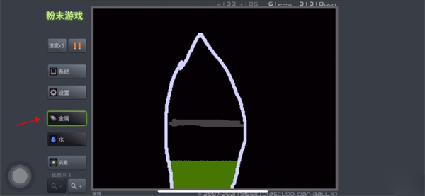 5、点击暂停按钮,将熔岩放置在金属顶部上方。