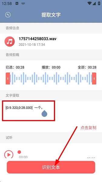 4、授权后选择目标音频文件,点击“识别文本”即可提取音频中的文字内容。
