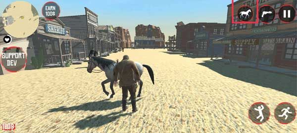 3、靠近马匹时,右上角将显示上马/下马按钮。