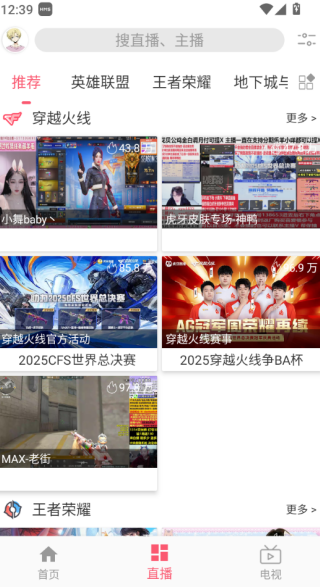 2、进入到主界面 ,可以看到直播栏目最新的视频,让您可以点击查看直播。