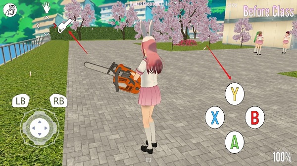 2、控制病娇酱移动到武士刀附近,然后点击屏幕右侧的B键。