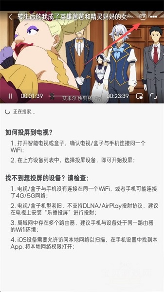 6、如需投屏,点击右上角投屏图标,选择设备即可开始投屏。
