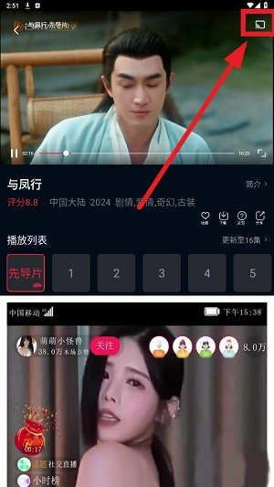 3、进入影片播放界面后,点击画面右上角的投屏图标。