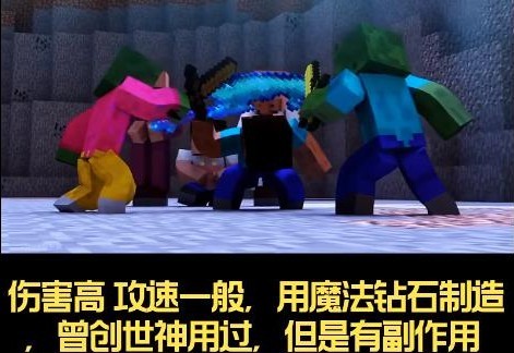 拥有较高的伤害输出,不过攻击速度较为普通。采用魔法钻石铸造,曾为创世神所用,但使用时存在一定的负面效果。