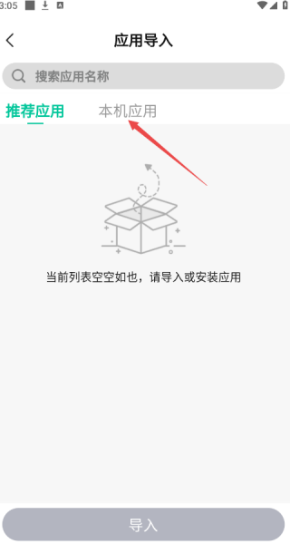 3、进入到导入功能界面,选择本机应用,会自动扫描并识别本机安装的所有应用。