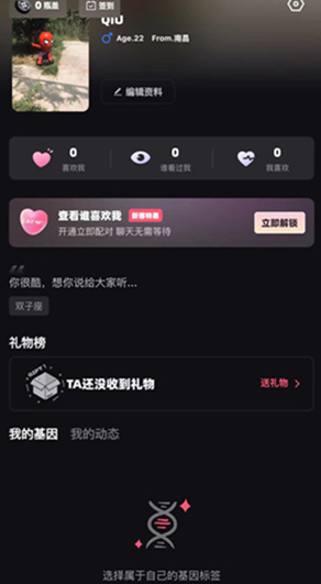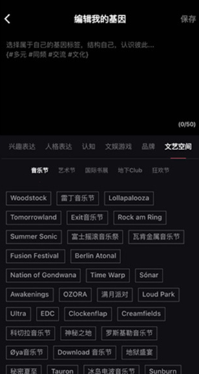 2、接下来,在“我的基因”部分,点击“搭建基因库”,完成基因库的搭建后,您将能更精准地将内容分享给具有相似性格的受众。这里提供了丰富多样的基因标签,您可以根据自己的性格特征来选择,最多可填写50个标签,完成标签的选择后,返回之前的步骤。