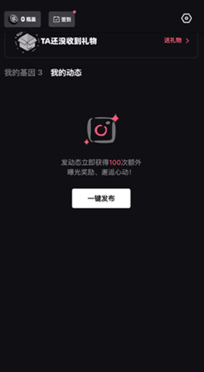 3、然后,点击“我的动态”,在该页面找到并点击“一键发布”按钮。