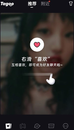 1、进入首页,对感兴趣的TA可以选择右滑喜欢。