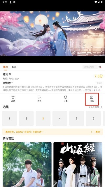 2、选择您想要下载的影视资源,例如小编选择的《陈情令》,点击缓存图标。